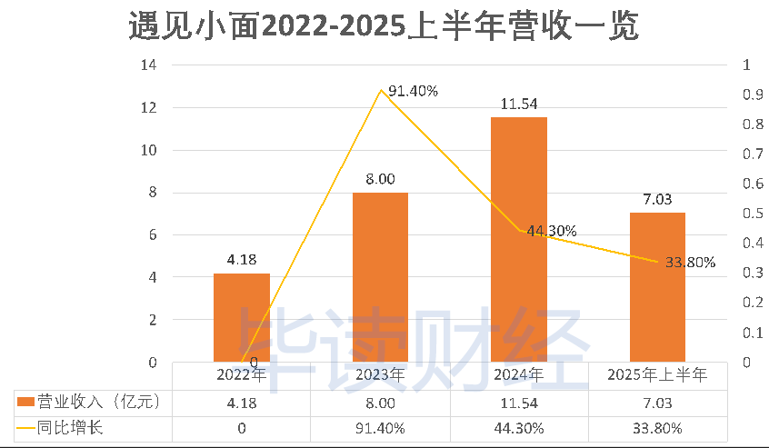 高速拓店也直接帶動了營收規(guī)模的躍升。2022年,公司收入尚為4.18億元;到2023年翻近一倍至8億元;2024年進一步攀升至11.54億元;僅2025年上半年就已實現(xiàn)7.03億元營收,相當于2022年全年收入的168%。這種近乎線性增長的曲線,在當前餐飲行業(yè)普遍承壓的背景下顯得格外亮眼。