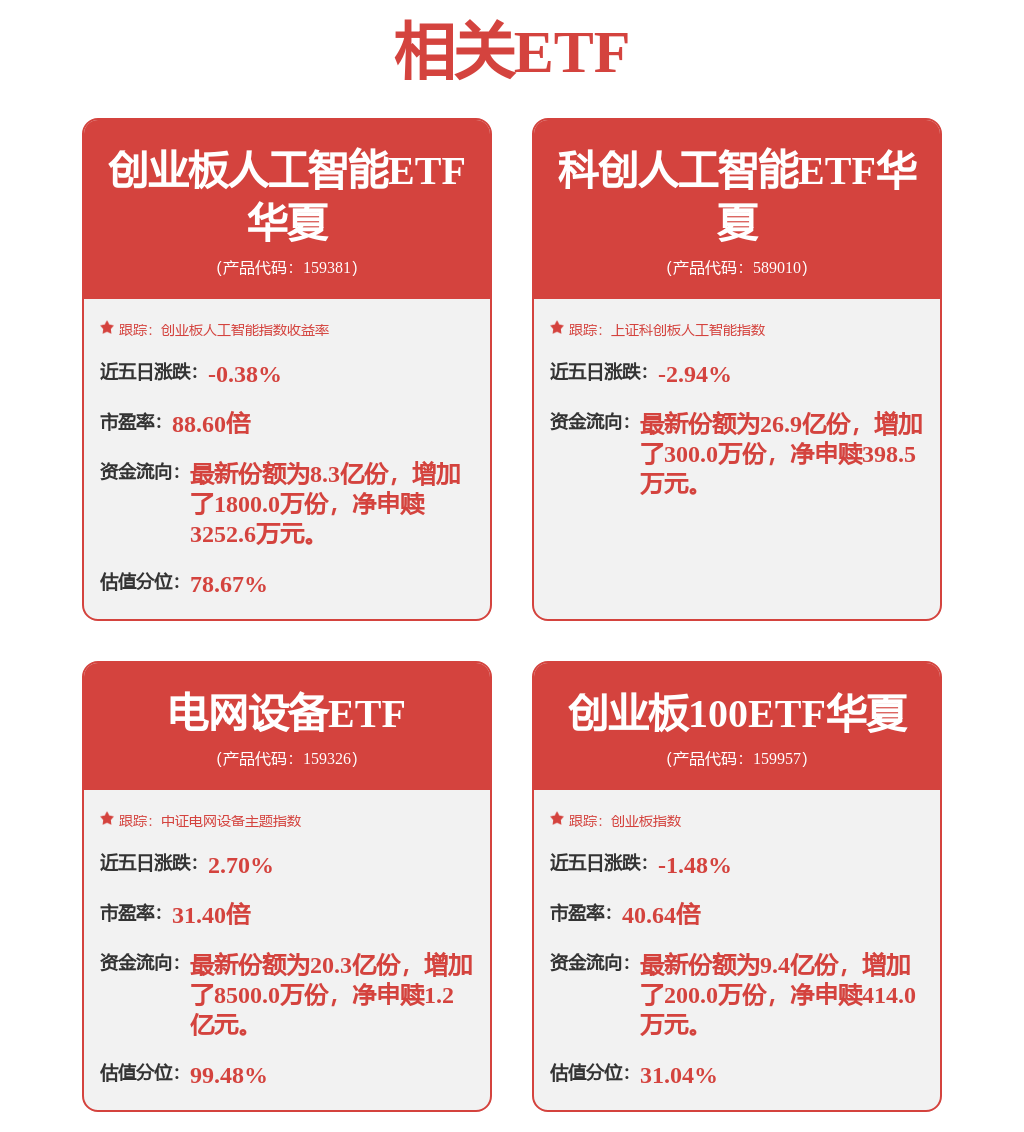 光模塊CPO含量高→創(chuàng)業(yè)板人工智能ETF華夏(159381),跟蹤創(chuàng)業(yè)板人工智能指數(shù)(970070.CNI),場內(nèi)綜合費(fèi)率僅0.20%,位居同類最低。場外聯(lián)接(A類:025505;C類:025506)