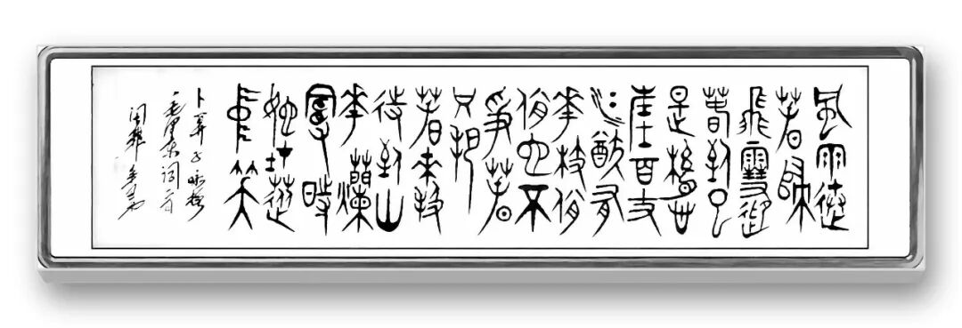當然,藝術創作永無止境,張華老師的大篆作品也并非完美無缺。在部分作品中,個別字的結體變化略顯保守,若能在堅守傳統的基礎上進一步突破,或許能展現出更具個性的藝術風貌;在筆法的豐富性上,若能融入更多樣的表現手法,或許能使作品的藝術感染力更上一層樓。但瑕不掩瑜,張華老師的大篆作品所展現出的深厚功力、獨特風格與文化內涵,早已使其在當代書壇占據重要地位。