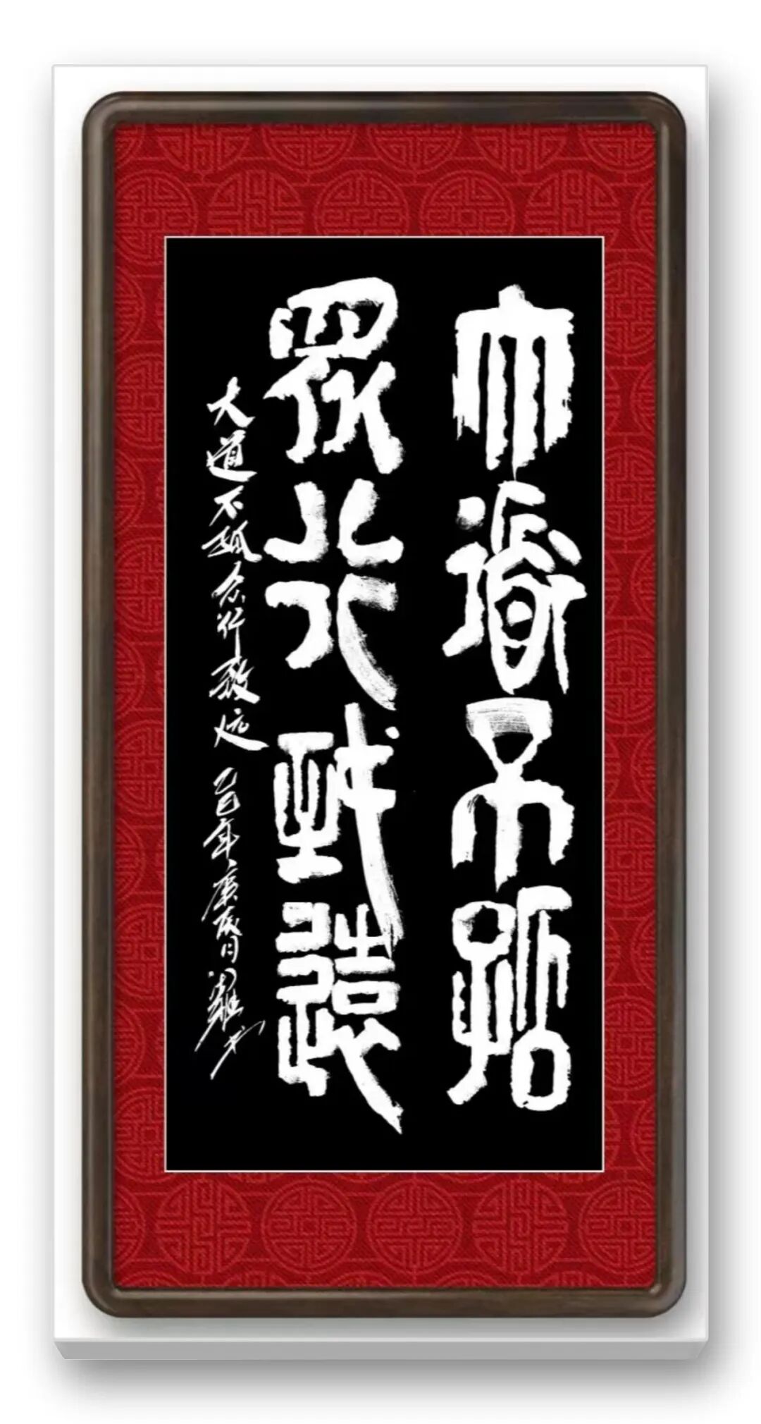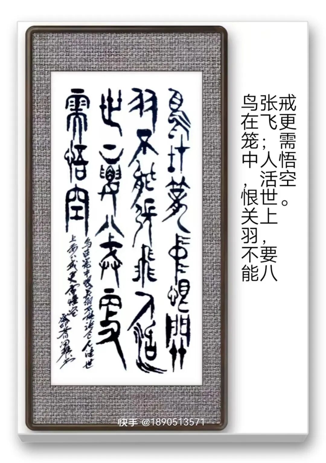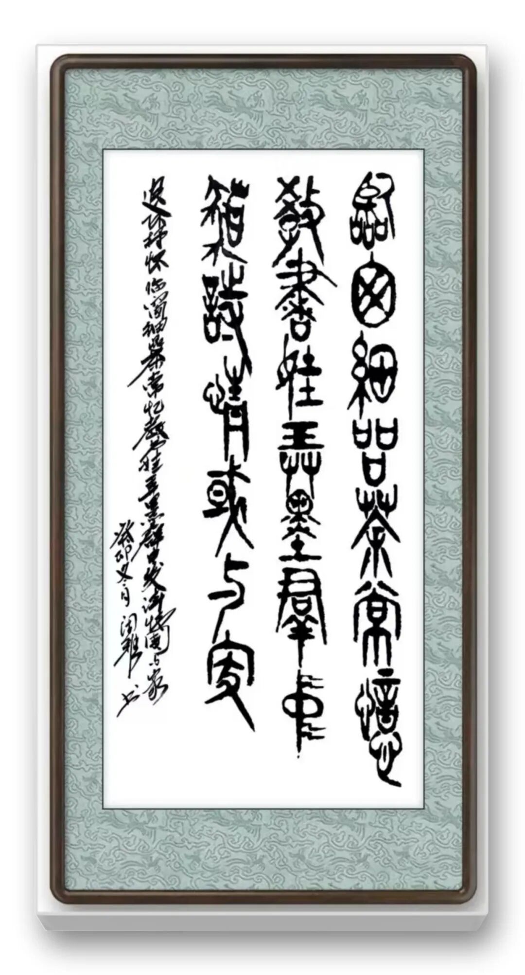 總而言之,張華老師的大篆作品是傳統與創新的完美融合,是筆墨技巧與文化內涵的有機統一。他以鐵筆鑄古韻,用匠心傳文脈,將大篆書法的古樸之美與當代審美融為一體,為當代大篆創作樹立了典范。他不僅是大篆書法的創作者,更是中華優秀傳統文化的傳承者與推廣者。相信在未來的創作中,張華老師必將繼續深耕大篆領域,不斷探索創新,創作出更多具有時代意義與藝術價值的作品,為中國書法藝術的發展做出更大的貢獻。而我們作為書法愛好者與傳統文化的傳承者,也應從張華老師的作品與精神中汲取營養,共同致力于中華優秀傳統文化的傳承與發展,讓古老的書法藝術在當代煥發出更加璀璨的光彩。