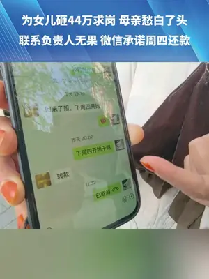 (三)為女兒砸44萬求崗,母親愁白了頭。居間人:我只是個打工的,早不干了。聯系負責人無果,微信承諾周四還款。#媒體精選計劃 #都市接到辦