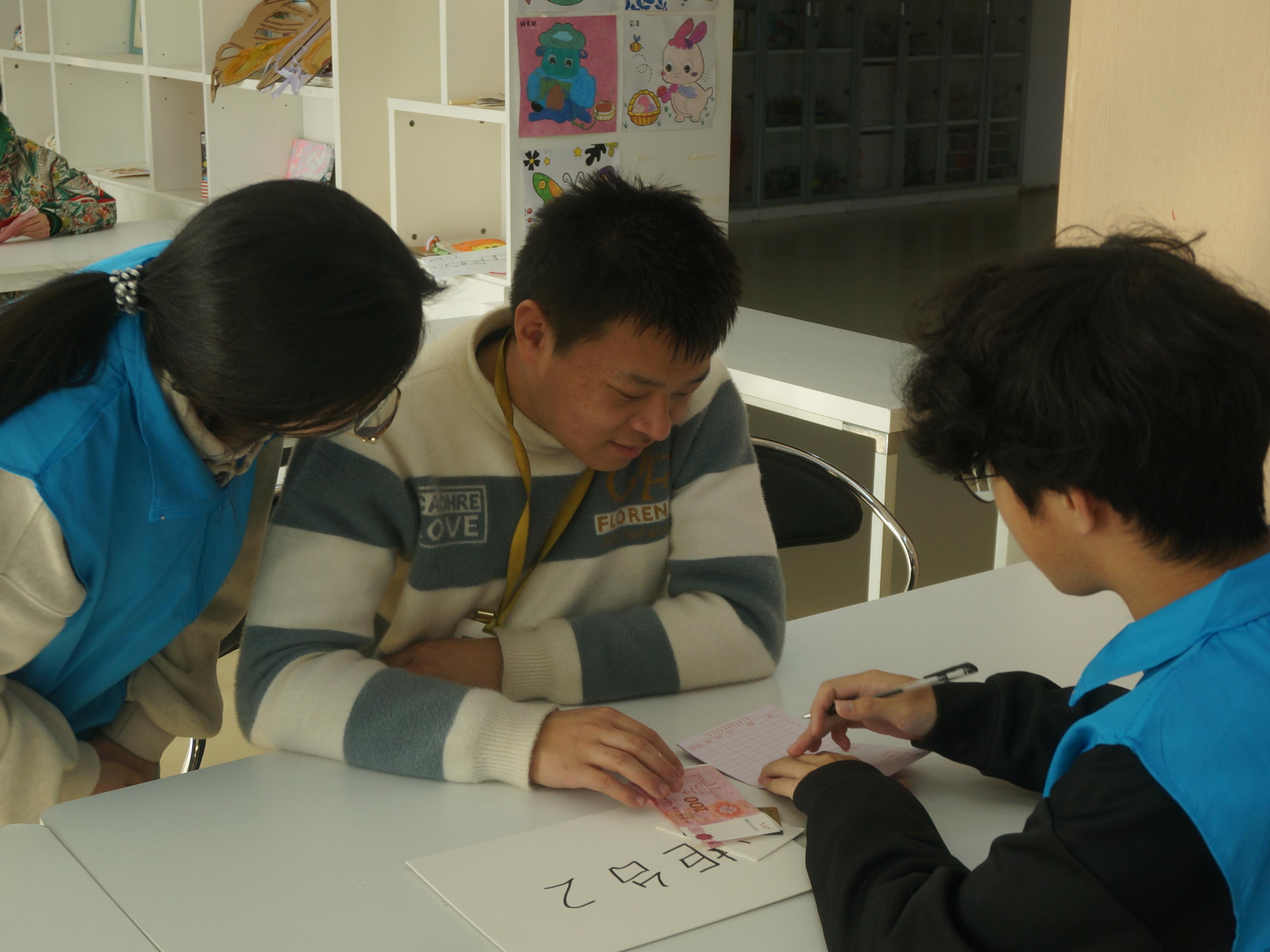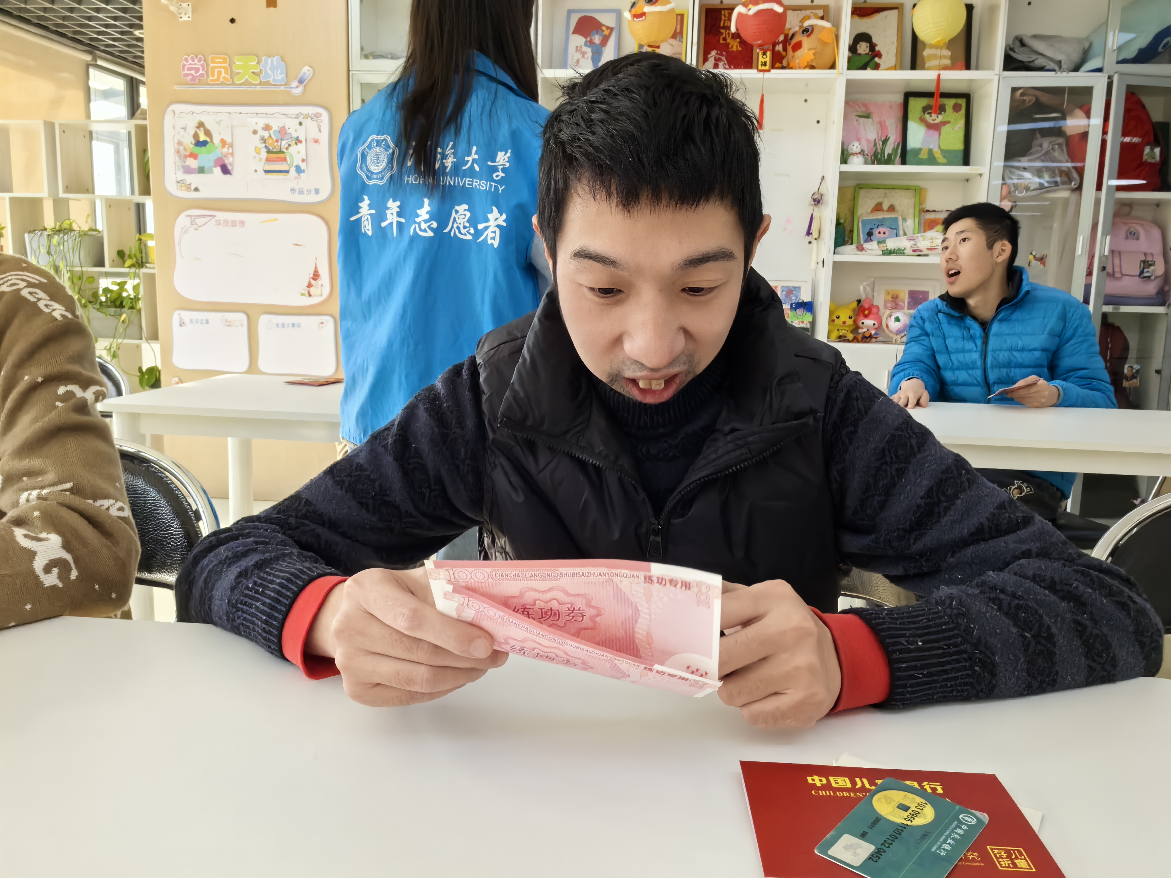 12月9日,河海大學(xué)青年志愿者協(xié)會將社會課堂搬進(jìn)了中心。他們精心布置了取號區(qū)、柜臺和ATM機(jī),開展“銀行辦理”角色扮演?;顒訌闹R講解開始,進(jìn)而迅速進(jìn)入高度擬真的實(shí)操:取號排隊(duì)、柜臺辦理“存款”、ATM機(jī)“取款”。學(xué)員們認(rèn)真扮演“客戶”,在志愿者引導(dǎo)下練習(xí)每一個(gè)社會規(guī)則:保持間距、隱私保護(hù)、禮貌用語。這場情景模擬,如同一次安全的社會預(yù)演,將抽象的公共場合行為規(guī)范,轉(zhuǎn)化為可記憶、可復(fù)制的肌肉記憶與流程體驗(yàn),有效提升了學(xué)員獨(dú)立應(yīng)對日常金融事務(wù)的潛在能力。