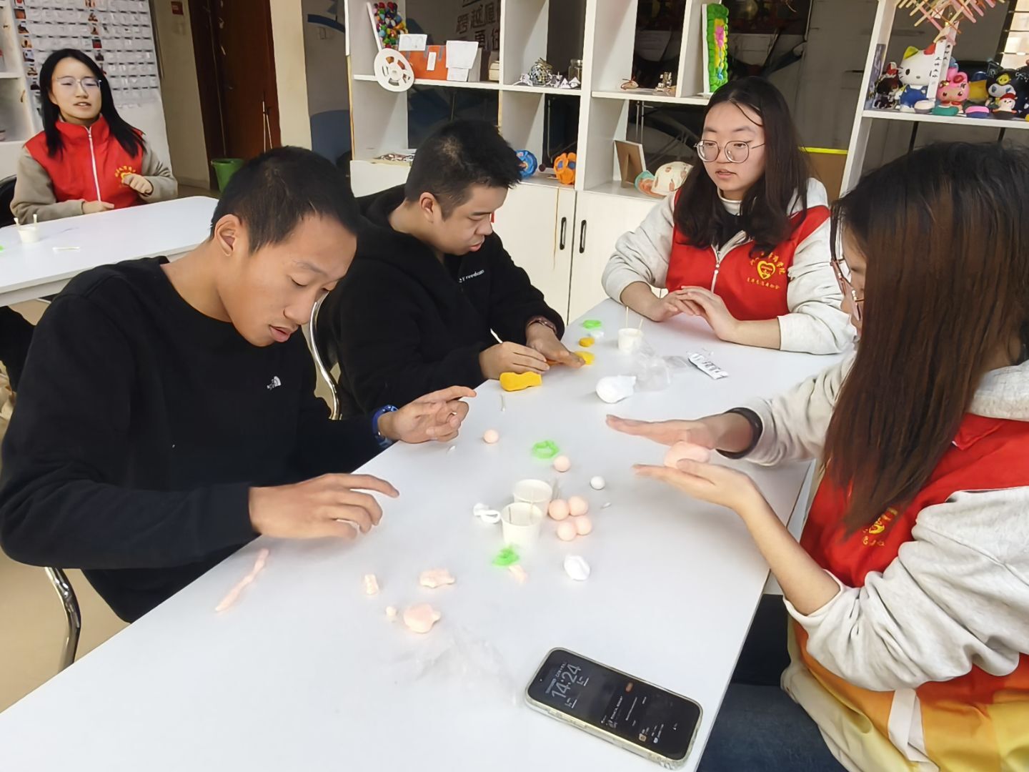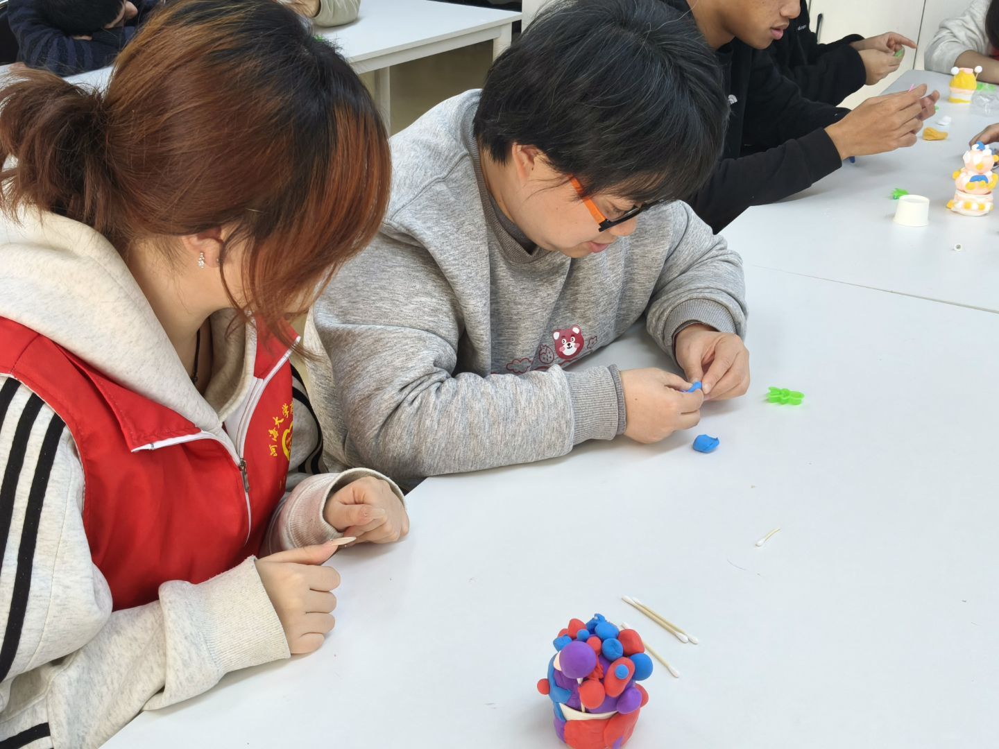 12月11日,河海大學(xué)商學(xué)院青協(xié)的志愿者們搭建了一個(gè)充滿觸感與歡笑的下午。活動從一場簡易保齡球游戲開始,擲球、擊倒、歡呼,簡單的規(guī)則瞬間拉近了彼此的距離。隨后的粘土熱氣球創(chuàng)作,則進(jìn)入了一個(gè)寧靜而繽紛的世界。志愿者們不再是主導(dǎo)者,而是協(xié)助者,他們提供材料與基本指導(dǎo),而色彩的組合、形狀的構(gòu)思則交由學(xué)員們主導(dǎo)。那些誕生于指尖的、形態(tài)各異的熱氣球,不僅是手部靈活度的鍛煉成果,更是內(nèi)在想象力被看見、被鼓勵(lì)的生動證明。