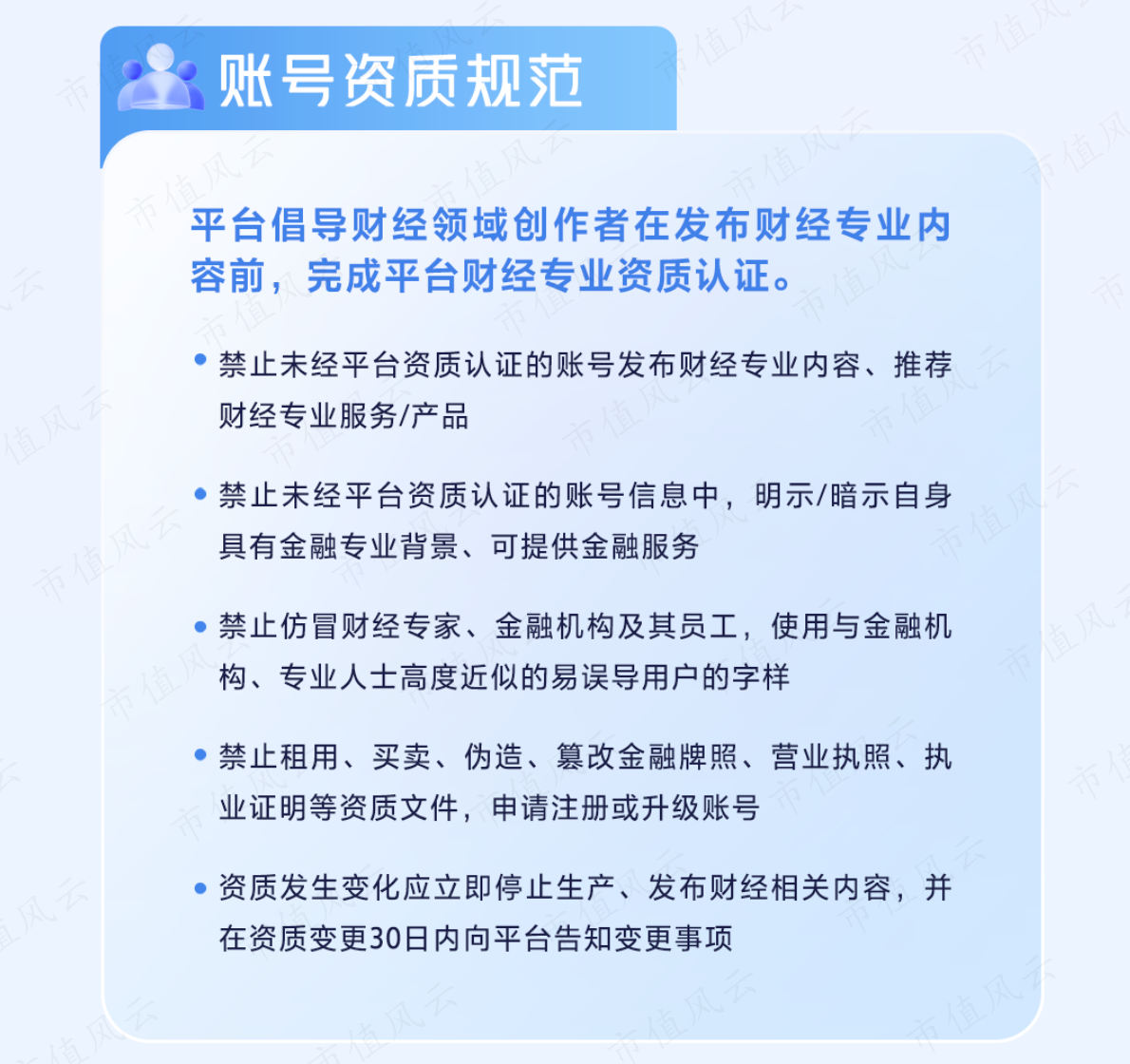內容管理是平臺營造健康財經內容生態的重中之重。《公約》在引導財經創作者發布優質內容的同時,明確了一系列禁止行為。在正向引導方面,《公約》鼓勵財經創作者發布客觀、中立的財經專業知識,通過科普金融理財常識,為用戶持續提供專業、優質的財經內容,助力用戶提升財經認知。《公約》支持完成財經專業資質認證的賬號,合規介紹證券、保險、貸款等財經領域相關內容,并注明從業信息。