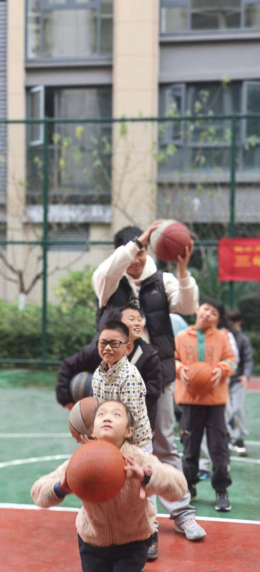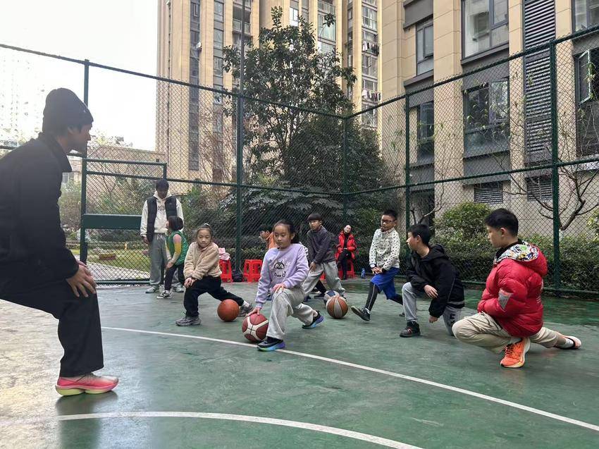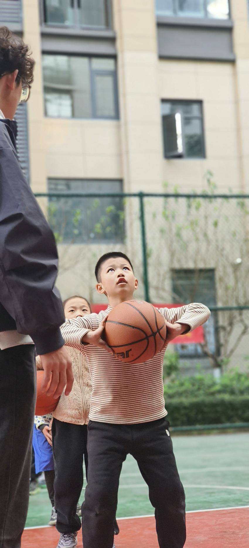 “手腕發力要柔和,膝蓋微屈找節奏!”訓練場上,大學生志愿者們化身“籃球導師”,根據學員的年齡、性別和基礎差異分組教學。針對低年級學員,重點強化運球手型與步伐;為高年級孩子增設三步上籃分解動作練習,確保每個孩子都能“聽得懂、學得會”。