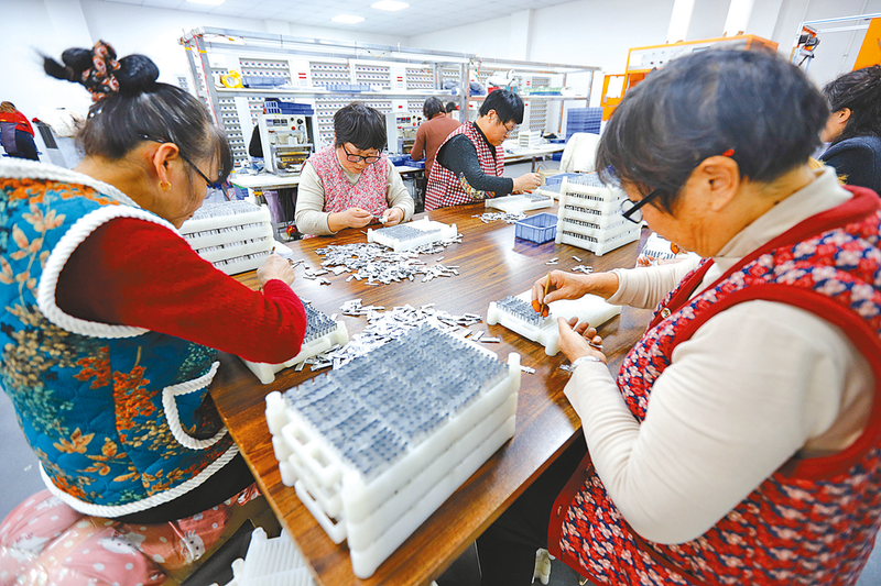 生產線上,一位年近七十的工作人員正在進行簡單的包裝工作,動作不快卻一絲不茍。“年紀大了,重活干不了,在這里動動手,感覺人都有精神了。”他說。