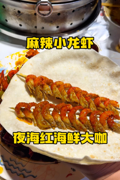 鄭州紅專路吃海鮮大咖,還有麻辣小龍蝦,用烙饃一卷,帶勁很!