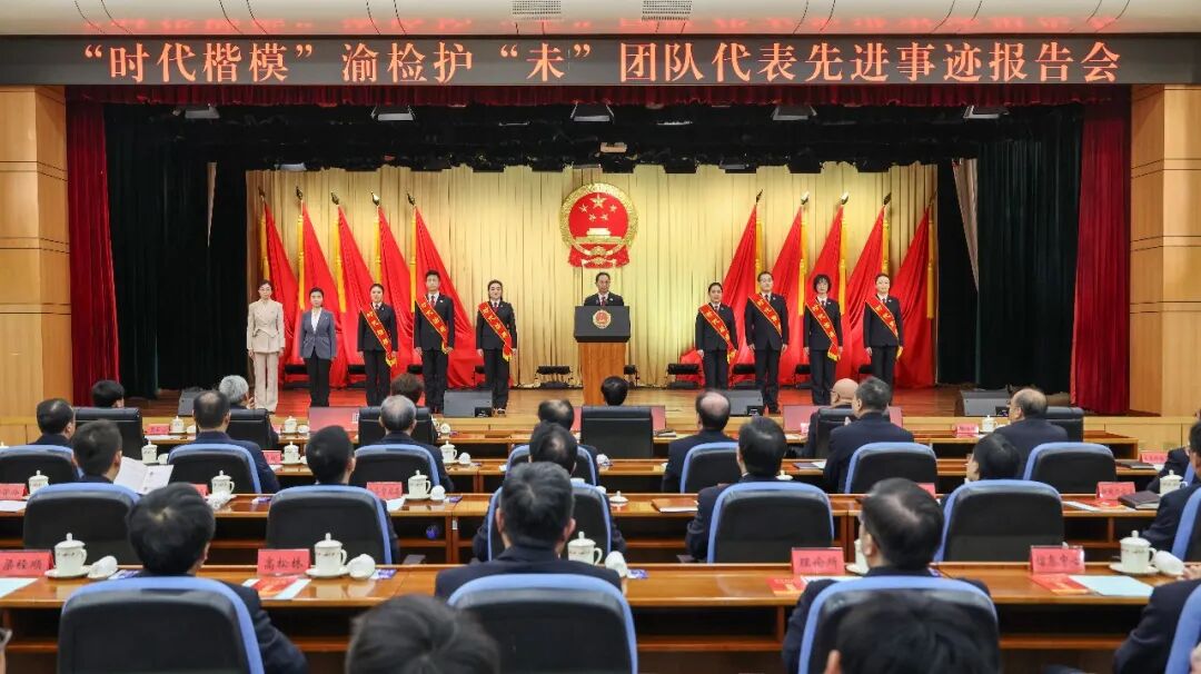 滕繼國表示,渝檢護“未”團隊代表是全國檢察機關首個獲評“時代楷模”稱號的先進典型,是在持續推進習近平法治思想檢察實踐中培育成長起來的檢察英模。他們的先進事跡,充分彰顯了新時代新征程檢察隊伍的時代精神、時代正氣、時代風采。各級檢察機關、全體檢察人員要認真學習、大力弘揚渝檢護“未”團隊代表的先進事跡和時代精神,持續擦亮堅定擁護“兩個確立”、堅決做到“兩個維護”的鮮明政治底色,堅決扛起為大局服務、為人民司法、為法治擔當的崇高職責使命,忠實踐行高質效辦好每一個案件、“努力讓人民群眾在每一個司法案件中感受到公平正義”的基本價值追求,不斷厚植檢察機關求真務實、擔當實干的鮮明履職特征,忠誠履職、依法履職、全面履職,持續推進習近平法治思想的檢察實踐,為以中國式現代化全面推進強國建設、民族復興偉業作出更大檢察貢獻。