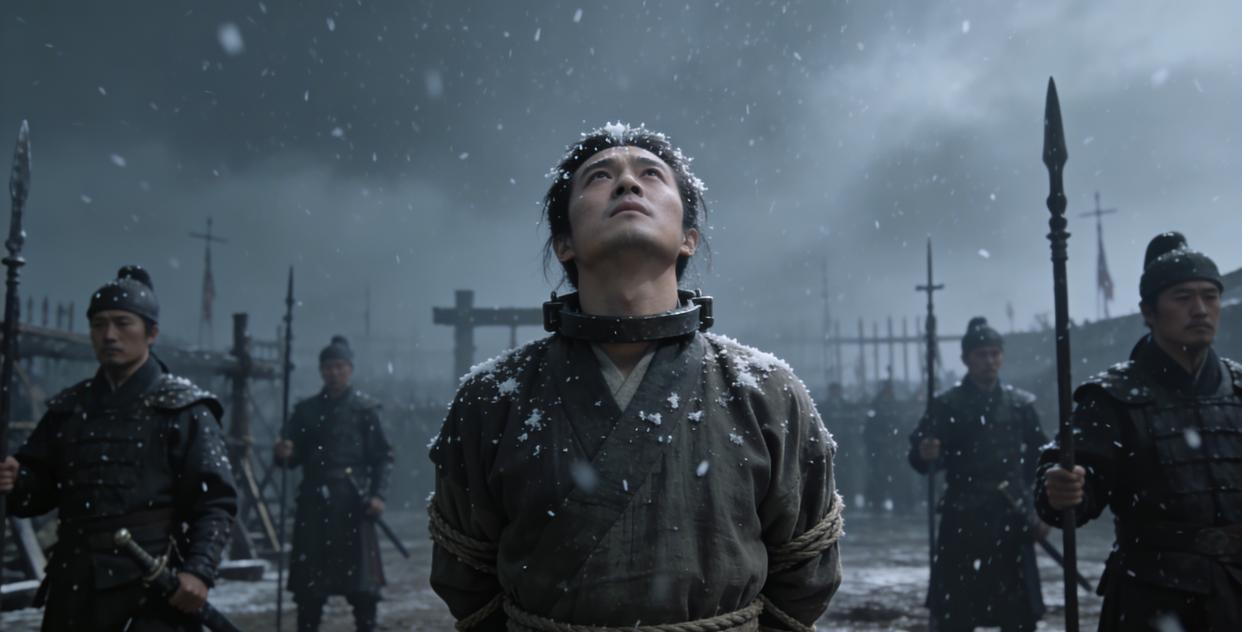 刑場上飄著細(xì)雪。張憲抬起頭,看著灰蒙蒙的天空。他想起很多年前,岳飛教他讀《出師表》,讀到“鞠躬盡瘁,死而后已”時,曾問他:“鵬舉,若有一天,忠義不能兩全,當(dāng)如何?”