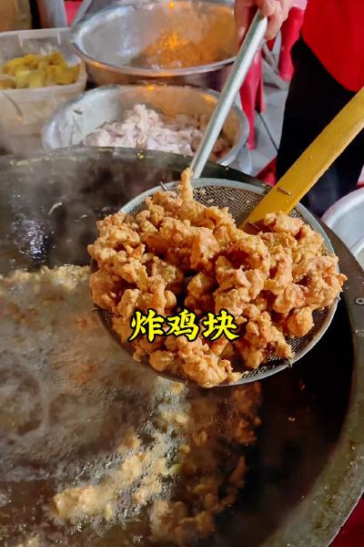 鄭州北郊,剛出鍋的炸雞塊,外焦里嫩,咸香適口,吃著得勁的很