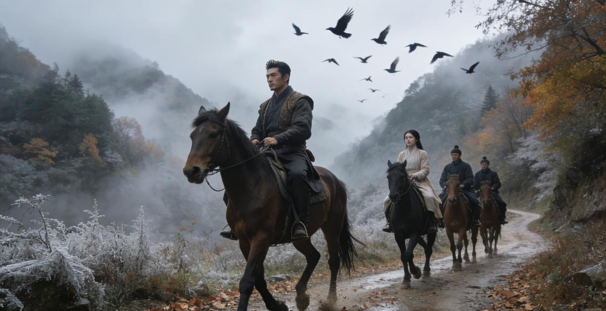 馬蹄踏碎枯葉,回聲在山谷中蕩開,驚起一群寒鴉,撲棱棱飛向灰蒙蒙的天際。