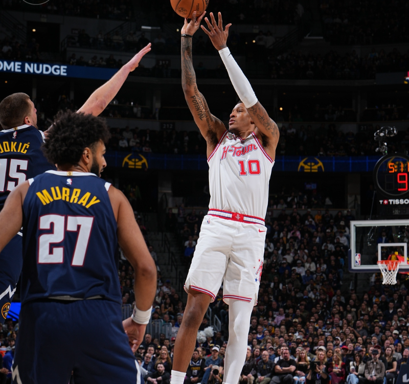 第三節(jié)比賽火箭打出一波7-2,約翰遜補籃得分后申京拋投命中,穆雷罰球3中3后火箭又打出一波9-2,隨后掘金打出一波6-0,奧科吉補籃得分后約基奇罰球2中2,火箭打出一波9-0后約基奇連得4分,亞當斯上籃得分后杜蘭特投籃命中,約翰遜命中三分后阿門內線得分,末尾階段掘金打出一波7-1,三節(jié)比賽結束掘金領先3分。第四節(jié)比賽史密斯命中三分,約翰遜命中三分后申京中投命中,謝潑德中投命中后掘金打出一波11-4,謝潑德命中三分后申京罰球2中2,瓊斯罰球2中2后申京連得4分,約基奇命中三分后約翰遜罰球2中1,火箭一波5-0后約基奇命中三分,謝潑德命中三分后瓊斯命中三分,杜蘭特命中三分后穆雷罰球2中1,申京拋投命中后穆雷罰球得分,最終兩隊打進加時賽。