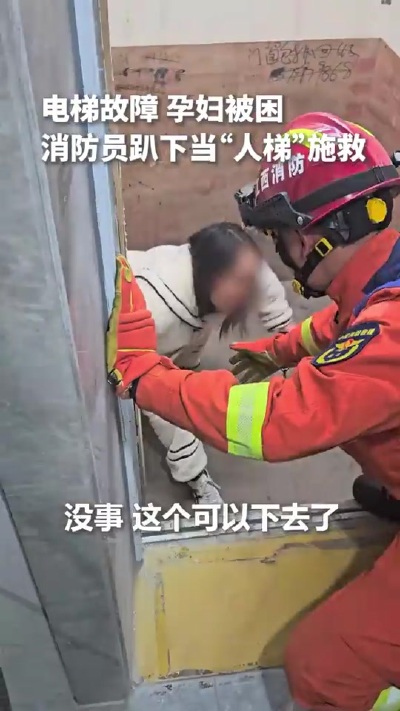 電梯突然故障 孕婦被困 消防員趴下當“人梯”施救