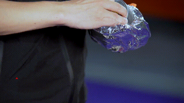 拔掉前后兩個灌塞,雙手撐開頭套口,從頭上佩戴至頸部,使得內(nèi)部呼吸口罩住口鼻,拉緊頭帶。