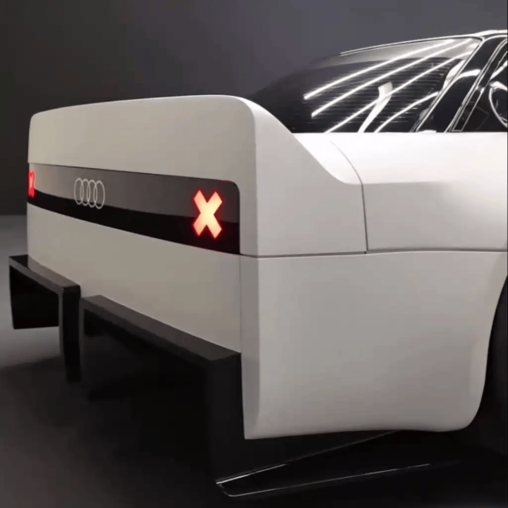 奧迪GT50概念車也有著復古的外觀,整個車身見棱見角,車燈和前格柵似乎讓人想起了奧迪的經典年代,但整個設計又被簡化,看上去有一定的時尚感。夸張的前后包圍以及輪圈,證實它是一臺賽車的化身。