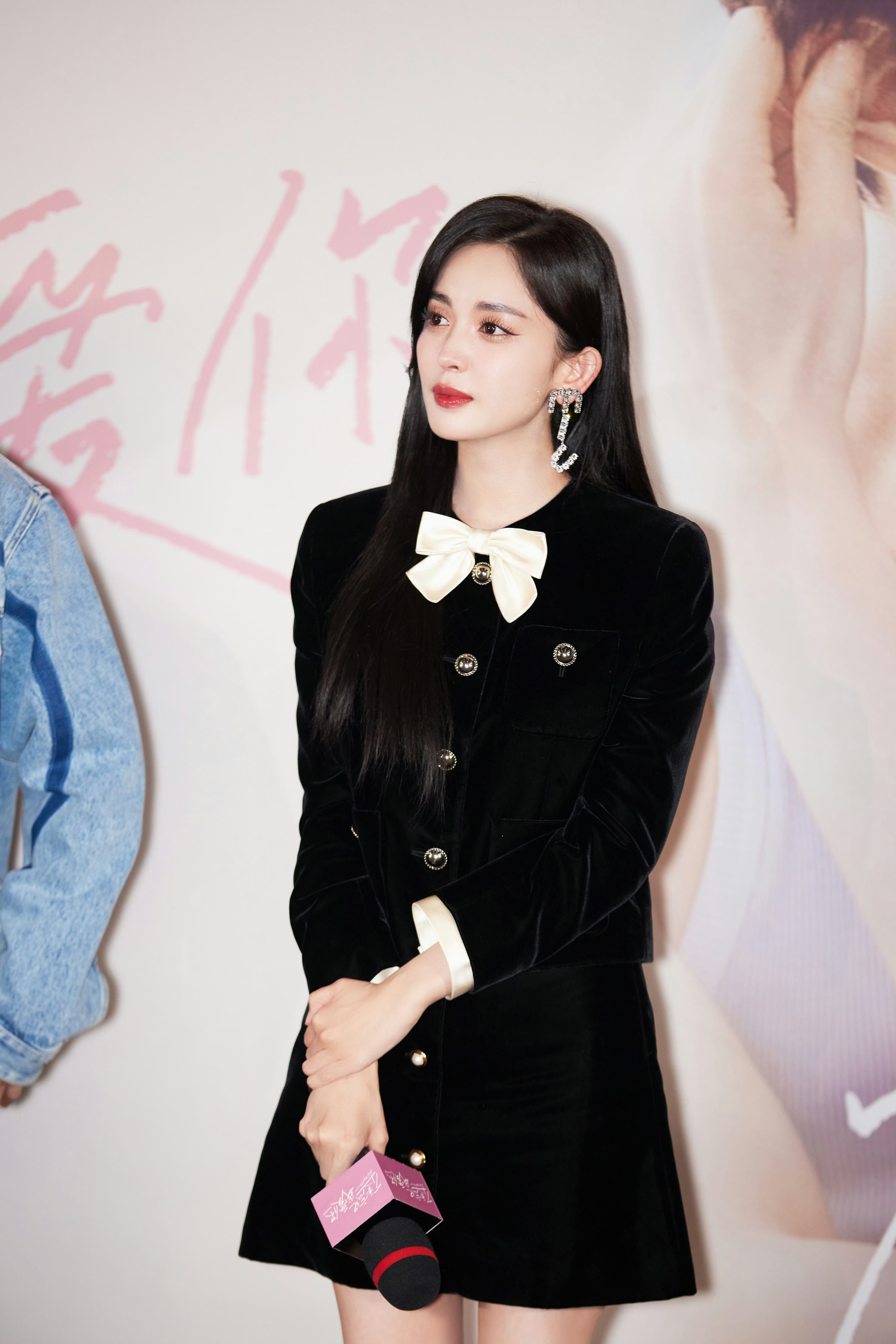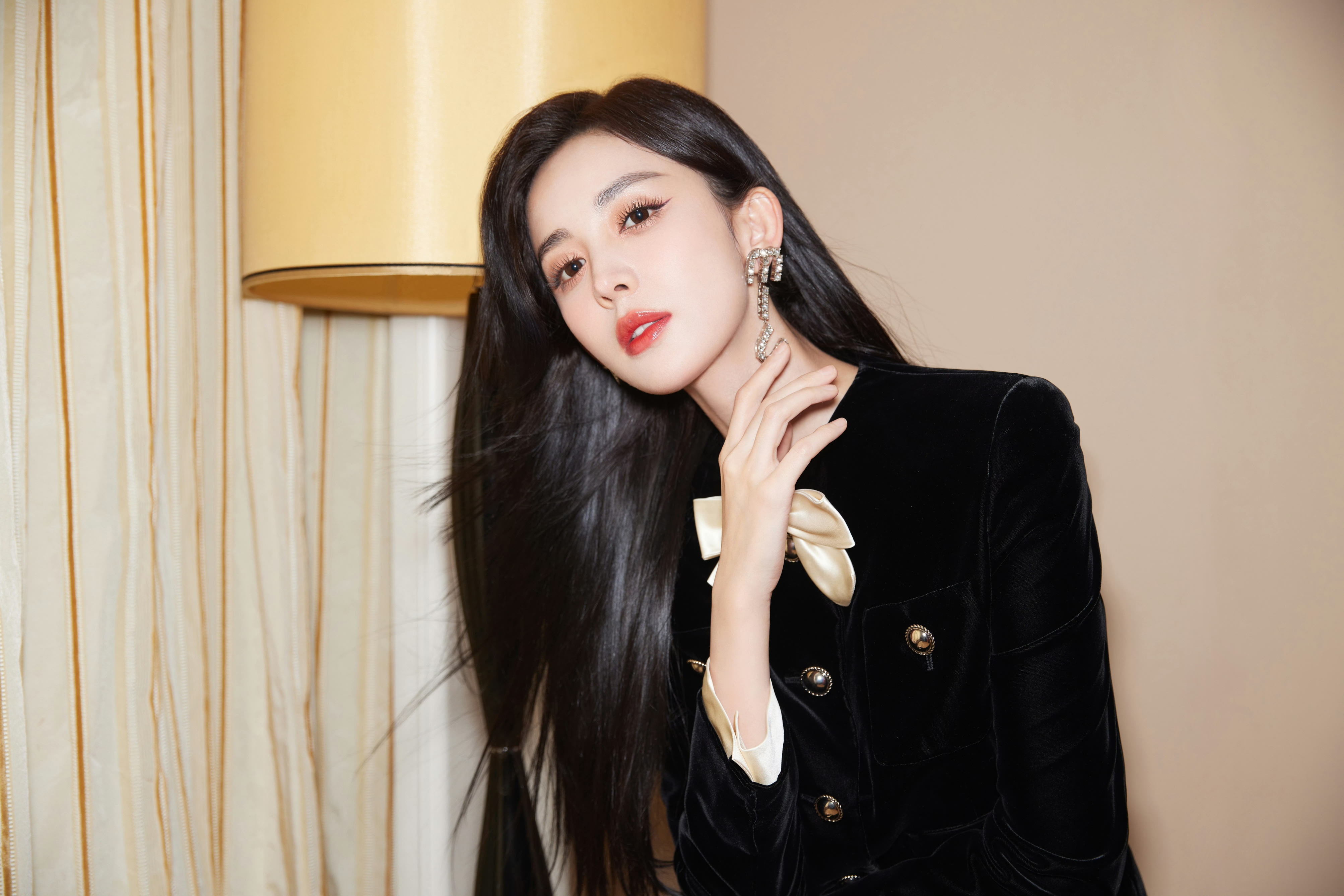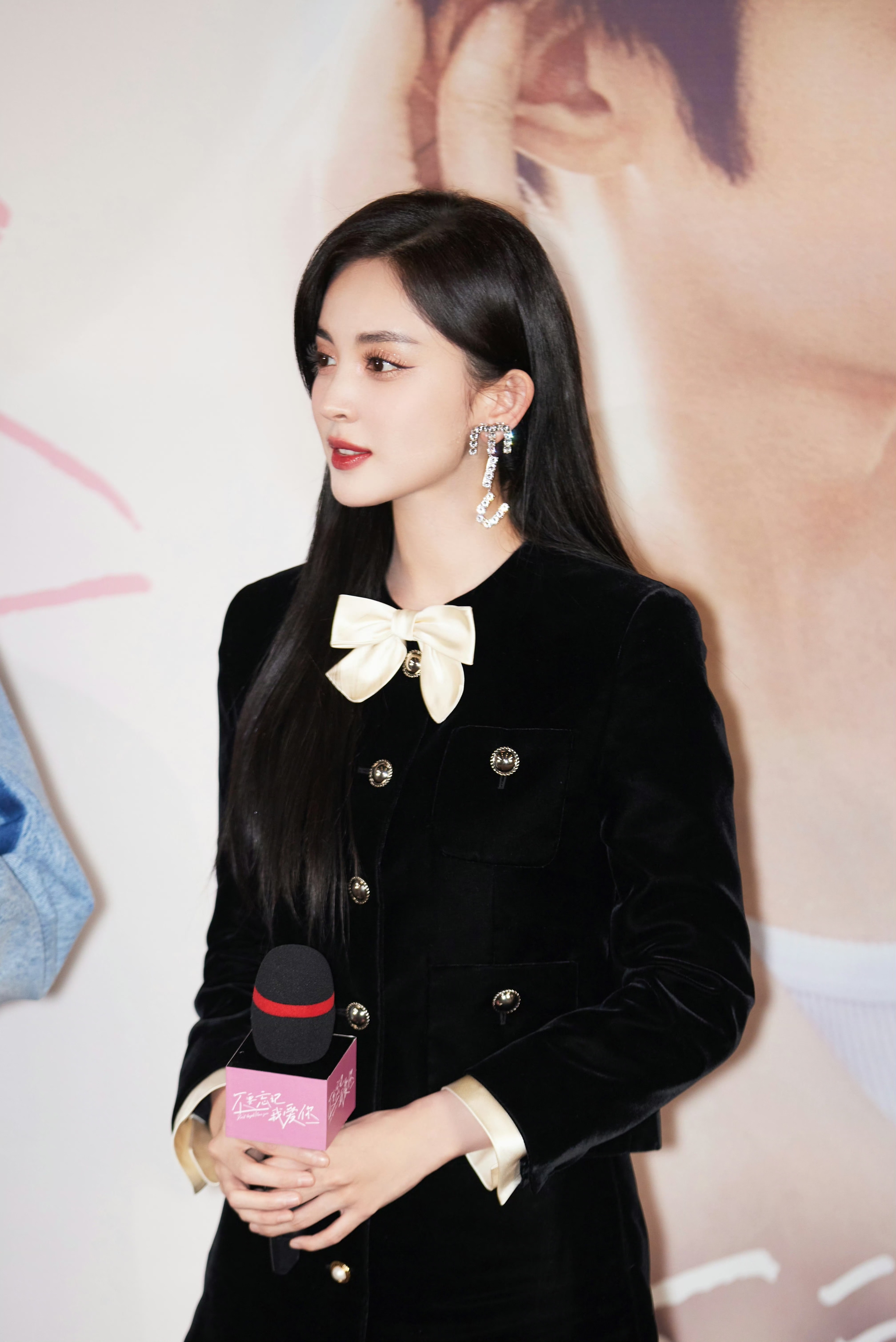 領口的白色蝴蝶結作為點睛之筆,柔化了西裝的硬朗,增添了甜美元素;搭配黑色水鉆高跟鞋,精致感拉滿。紅唇妝容明艷大氣,長發(fā)披肩盡顯溫柔嫵媚,整體造型在復古與精致間切換,將娜扎的優(yōu)越身材和獨特氣質(zhì)展現(xiàn)得淋漓盡致,不愧是紅毯顏值天花板。