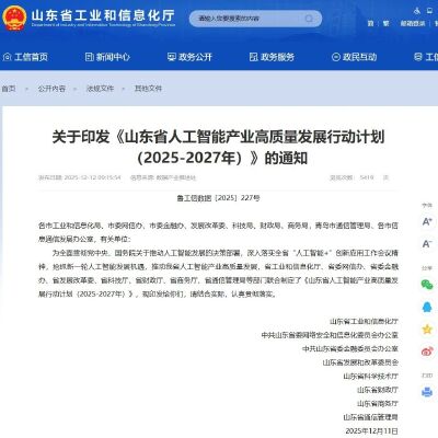 關于印發《山東省人工智能產業高質量發展行動計劃(2025-2027年)》的通知