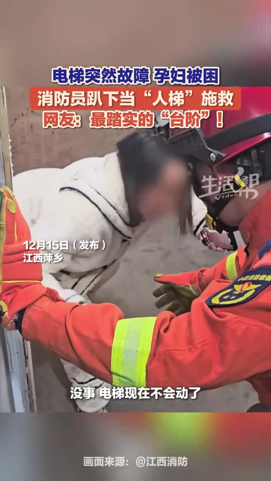 電梯突然故障 孕婦被困 消防員趴下當“人梯”施救