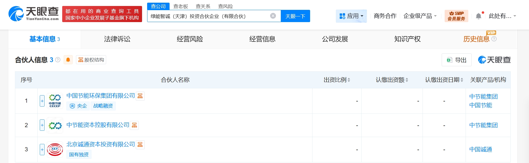 雷達財經訊,天眼查App顯示,近日,綠能智誠(天津)投資合伙企業(有限合伙)成立,執行事務合伙人為中節能資本控股有限公司,出資額27.5億人民幣,經營范圍為以自有資金從事投資活動。合伙人信息顯示,該合伙企業由中國節能環保集團有限公司、中節能資本控股有限公司、北京誠通資本投資有限公司共同出資。