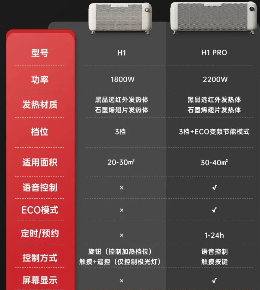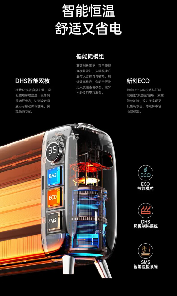 開啟就熱! 熱對流+熱輻射雙向供暖模式,最大能暖40㎡的屋子,大客廳也夠用。