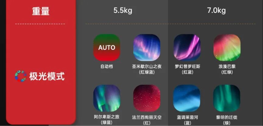內置【極光發生器】,共有8種顏色。