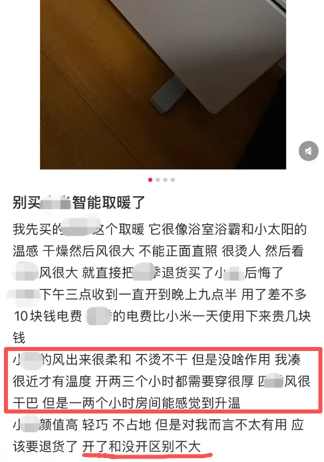 很多朋友在小紅薯上看的避雷貼,都是吐槽電暖器發熱效果差,機器特別燙但是熱風送不出去,周圍涼涼的半天也不升溫,白白耗費了巨多的電費!