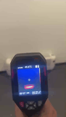 我們用熱敏機器測量,開機幾秒,上面區域就變紅了,而且成像的十分均勻,看著就覺得溫暖!