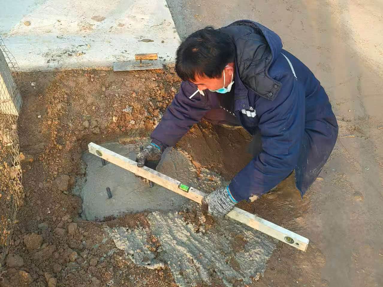 二是精細(xì)“打底”,攥緊質(zhì)量尺子。施工現(xiàn)場(chǎng)里,工人蹲在土坑旁,捏著水平尺來回校準(zhǔn),混凝土罐車“轟隆隆” 把料卸進(jìn)坑底,村干部盯著砂漿抹得平不平、預(yù)埋件埋得正不正:“基坑得挖夠深,混凝土得搗實(shí),這是路燈的‘腳’,可不能打晃!”目前110處基座已經(jīng)“穩(wěn)穩(wěn)落地”,給后續(xù)路燈“站上崗”筑牢了底氣。