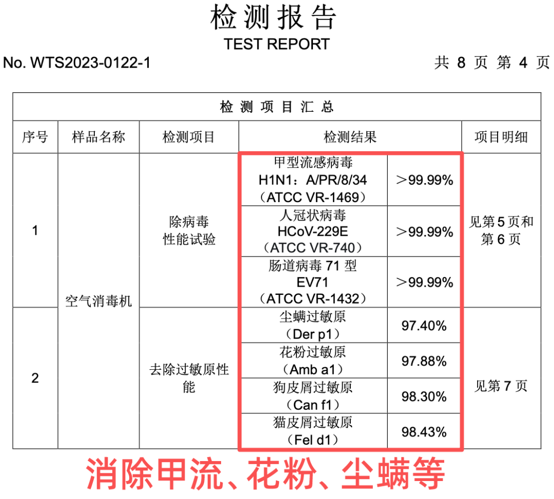 常見的流行病毒、過敏原,如甲型流感病毒、腸道病毒可消殺,花粉、塵螨等可過濾滅殺。