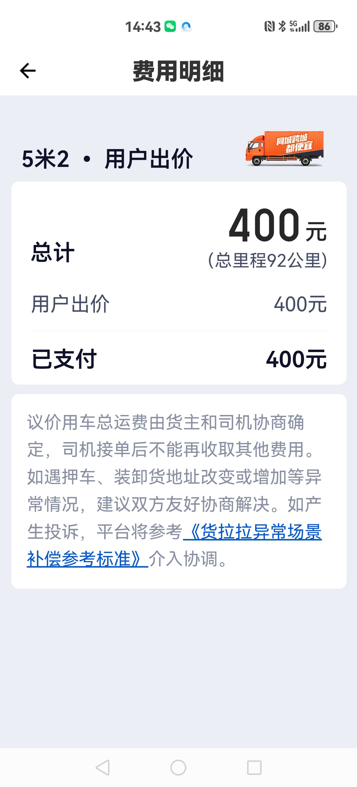 李師傅說,12月11日,他在貨拉拉平臺接單,去新鄭市孟莊鎮(zhèn)拉貨,送往新鄉(xiāng)市獲嘉縣。裝貨途中,他跟貨主說“你這出300多塊錢,還要上高速。”想讓貨主加個(gè)價(jià)時(shí),結(jié)果貨主當(dāng)時(shí)就反駁說,他出了400元。“當(dāng)時(shí)我倆都迷糊了,要不是貨主讓我看了他手機(jī)上下單是400元,我還不知道貨拉拉平臺還有這貓膩!”
