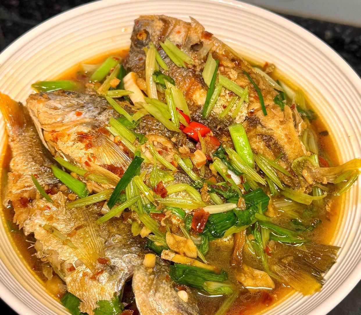 你瞧這魚,紅亮紅亮的湯汁裹著,芹菜和蒜葉點綴得綠綠的,看著就食欲大開!夾一塊魚肉,嫩得幾乎沒刺,鮮香中帶點微辣,湯汁拌米飯能吃兩大碗——真不是吹,我家每次做這道菜,鍋底的湯汁都能被舔干凈!