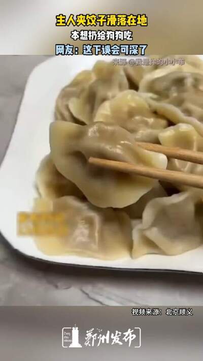 主人夾餃子滑落在地 本想扔給狗子吃 這下誤會大了