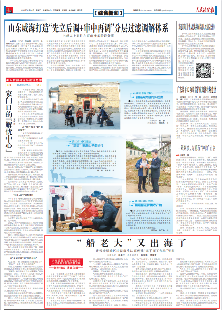又是一年豐收季,江蘇省連云港市贛榆區(qū)的漁民老王帶著12名員工又出海了。“前不久的那場糾紛,如果不是法庭的快速解決,哪來眼前的漁船馳騁、漁歌飄蕩。”老王很感慨。