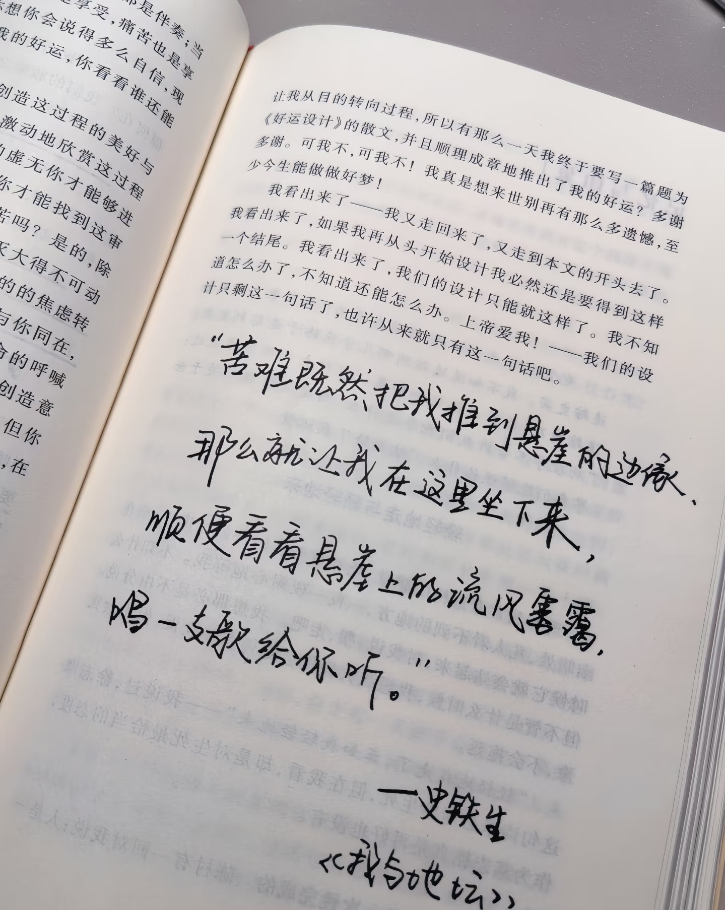 看著這些人的遭遇,史鐵生忽然豁然開朗:命運從不會公平出牌,它會把磨難隨意灑在人間,誰要承受,往往只憑偶然。就像自己的癱瘓、女孩的缺陷、朋友的錯過,這些都是無法改變的過去。如果一直揪著過去的遺憾不放,困在“為什么偏偏是我”的執念里,只會讓自己在痛苦的泥潭里越陷越深。