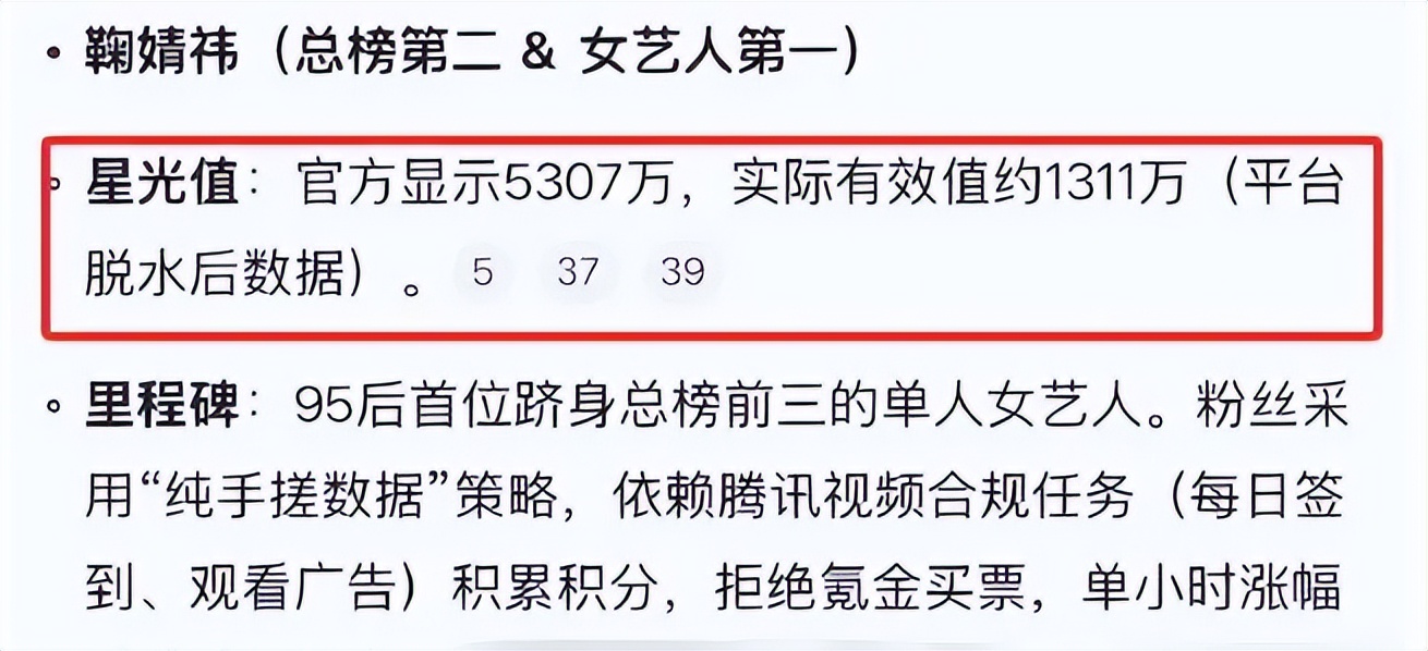 以5307萬星光值位列第二的鞠婧祎,成了星光大賞最具爭議的存在。