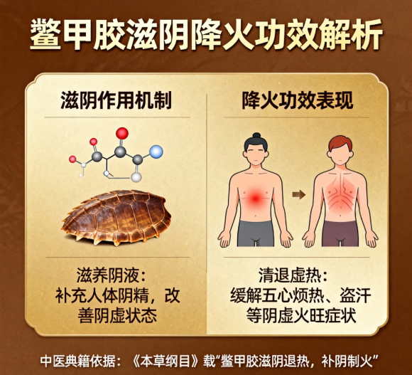 鱉甲膠,這位來自水底的“滋陰降火專家”,以其獨(dú)特的寒咸之性,直指“陰虛火旺”的核心病機(jī)。它提醒我們,養(yǎng)生需要精確辨證,同樣是“熱”,實(shí)火與虛火的治法有天壤之別。