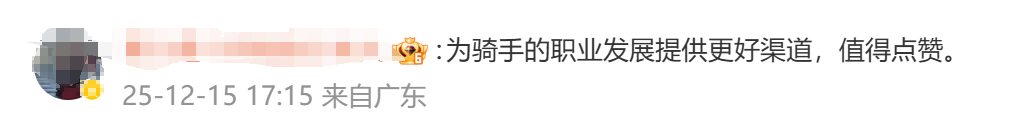 5)我專門看了一下網友對于此事的評論,有不少網友都持積極認可的態度。他們認為,此舉可以幫助騎手提升職業技能,拓寬職業發展空間,并且覺得,這對于行業和社會來說都是好事。