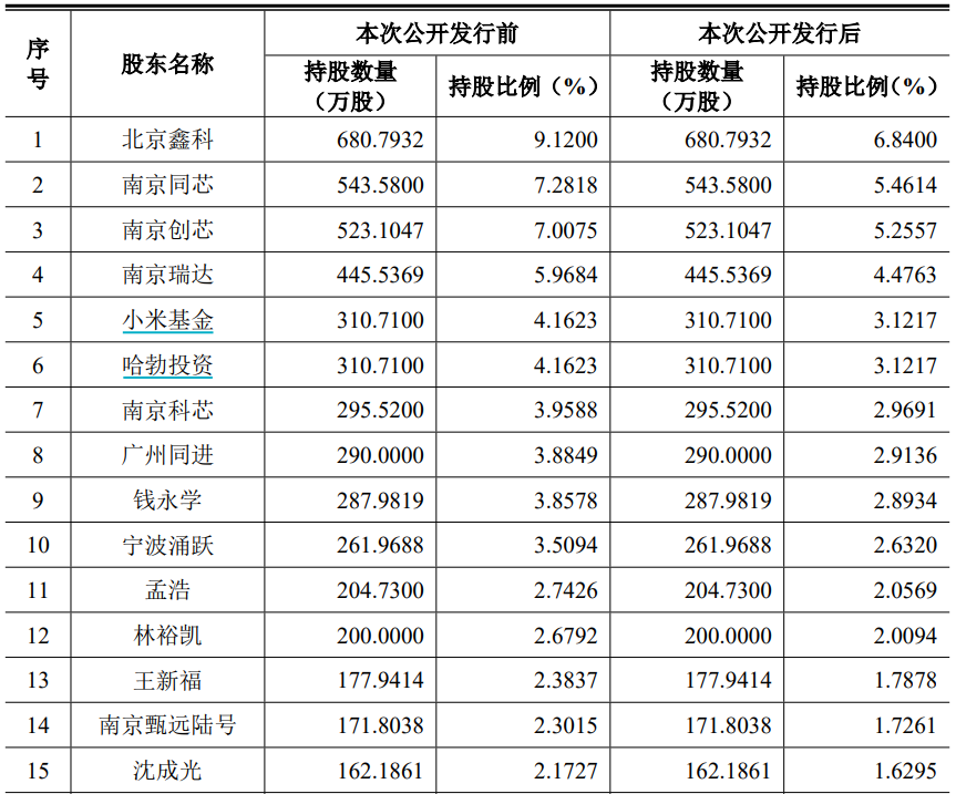 據招股書,截至IPO上市前,小米與華為關聯投資機構小米基金和哈勃投資各擁有昂瑞微310.71萬股股份,持股比例均為4.1623%。