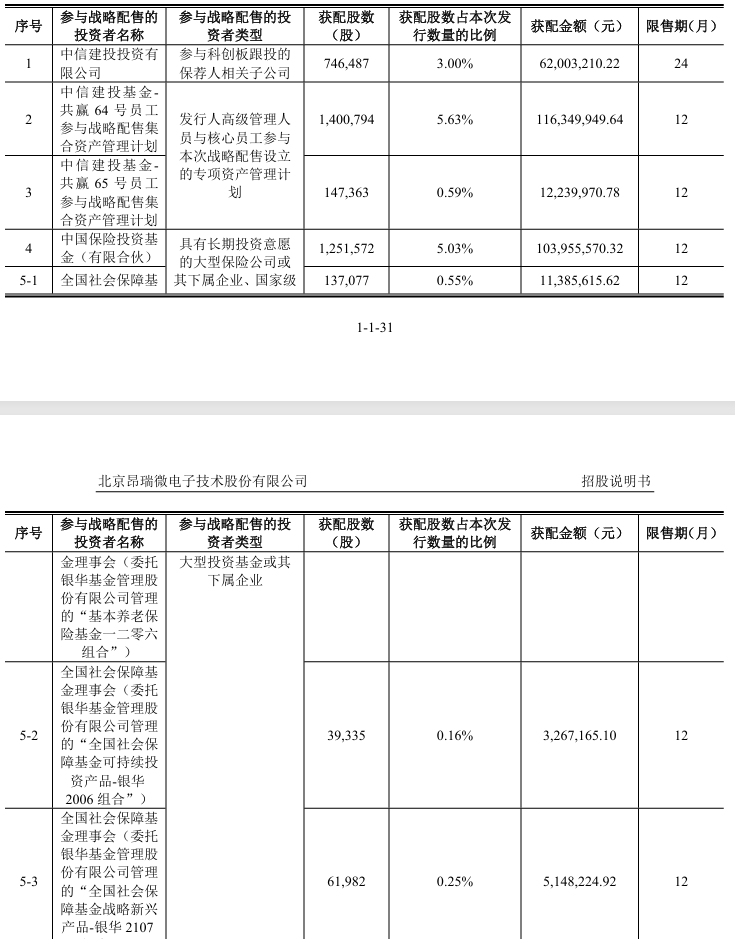 圖源:昂瑞微招股書(截圖為部分戰略配售投資者)