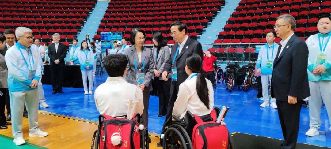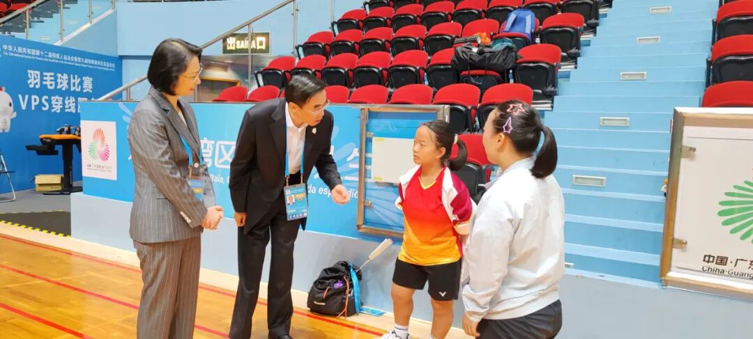 12月12日上午,殘特奧會組委會主任、中國殘聯主席與澳門特區政府社會文化司司長柯嵐,在澳門東亞運動會體育館看望殘奧羽毛球運動員。
