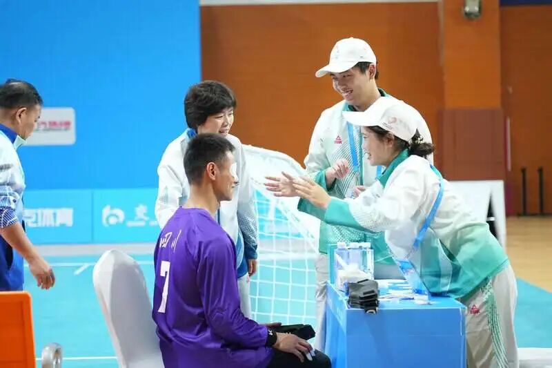 “戴上眼罩后,他們完全憑借聽(tīng)覺(jué)和觸覺(jué)判斷球的方向,用身體迎接對(duì)方選手?jǐn)S來(lái)的球。”廣東技術(shù)師范大學(xué)軟件工程專業(yè)志愿者劉智宇,一次次被運(yùn)動(dòng)員的無(wú)畏和勇敢震撼。賽場(chǎng)中,運(yùn)動(dòng)員憑借敏銳的聽(tīng)覺(jué)、空間感知和強(qiáng)勁的身體爆發(fā)力,在黑暗中完成攻守對(duì)抗,不斷挑戰(zhàn)自我極限。劉智宇說(shuō),有志愿者看到有運(yùn)動(dòng)員被球砸到,簡(jiǎn)單處理傷口后重返賽場(chǎng),“沒(méi)有絲毫退縮”。