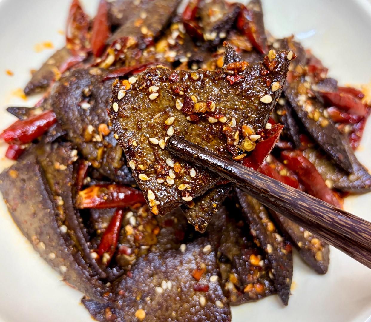 咬上一口,香辣的味道在舌尖上瞬間炸開,豬肝的肉質緊實有嚼勁,越嚼越香,每一口都充滿了滿足感,讓人根本停不下來。