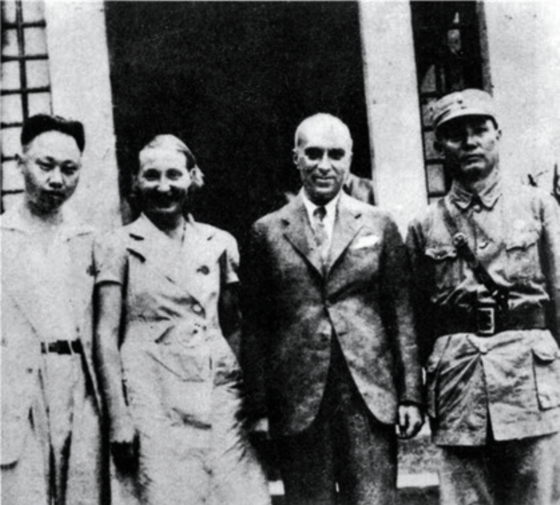 1939年,中共中央南方局在重慶紅巖村八路軍駐重慶辦事處舉行茶會,歡迎印度國民大會領袖尼赫魯訪渝。左起:王炳南、王安娜、尼赫魯、葉劍英