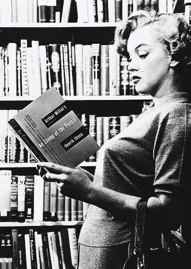 那是1957年的夏天,她與第三任丈夫,也是出了名的美國劇作家,《推銷員之死》作者阿瑟·米勒在紐約長島度假時所拍。這一年,大概也是“女文青”夢露短短36年生命里最快樂的時光吧。她與米勒新婚不久,恩愛非常,兩人一起游泳,一起在沙灘散步,參加女作家卡森·麥卡勒斯為丹麥作家伊薩克·迪內森所舉辦的午宴,她的活力與天真,讓這位《走出非洲》的名作家直直想起了非洲草原里的小獅子。因為米勒,她又陸續認識了杜魯門·卡波蒂、卡爾·桑德堡、索爾貝婁等當紅老少作家。