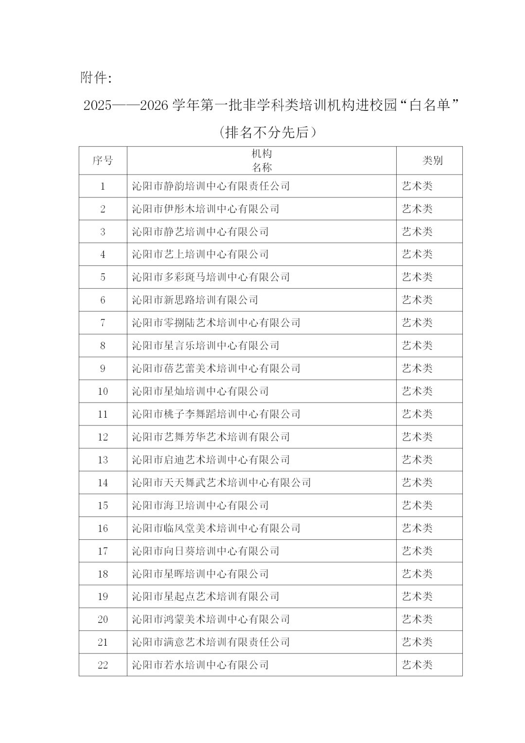 附件:2025——2026學年第一批非學科類培訓機構進校園“白名單”