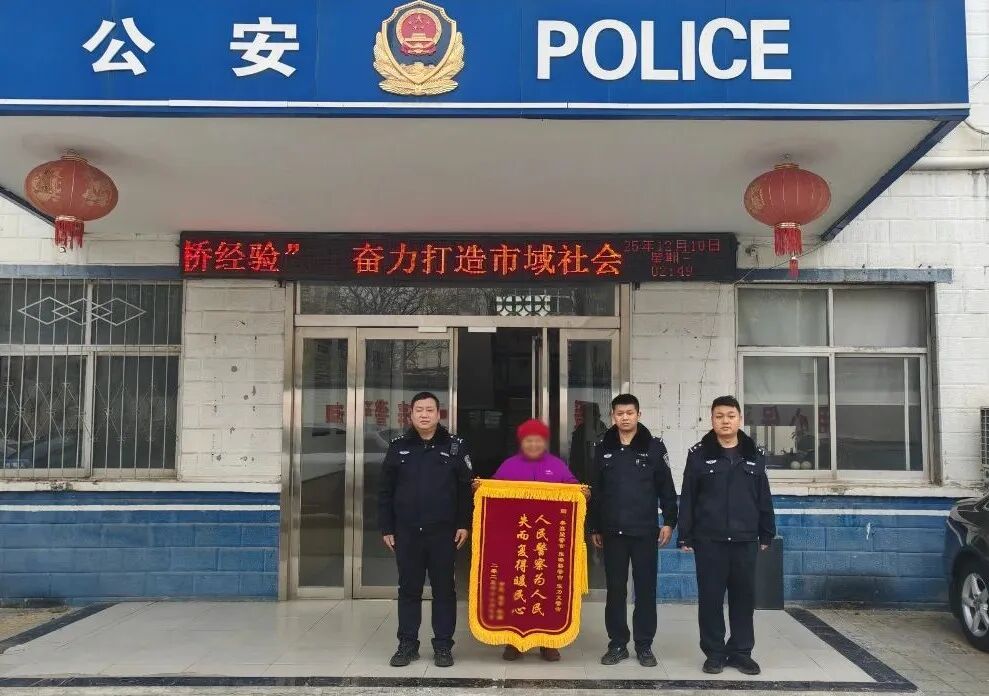 曹鎮(zhèn)派出所的高效服務,更讓市民辛女士感動不已。她遺失的手機是兒子用第一筆工資買的,對她而言意義非凡,報警時急得哭了出來。民警薛耀輝一邊安撫情緒,一邊聯(lián)系網格員聯(lián)動尋找。民警通過監(jiān)控發(fā)現(xiàn)疑似撿拾者后,網格員結合村內正在唱戲、人員集中的情況,判斷對方可能在戲臺附近。雙方聯(lián)動循著線索快速找到撿拾者,經耐心溝通后取回手機。從接警到物歸原主,全程僅用30分鐘。12月15日,辛女士帶著“高效神速尋失物,盡心盡責解民憂”的錦旗,向民警和網格員表達謝意。
