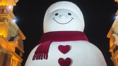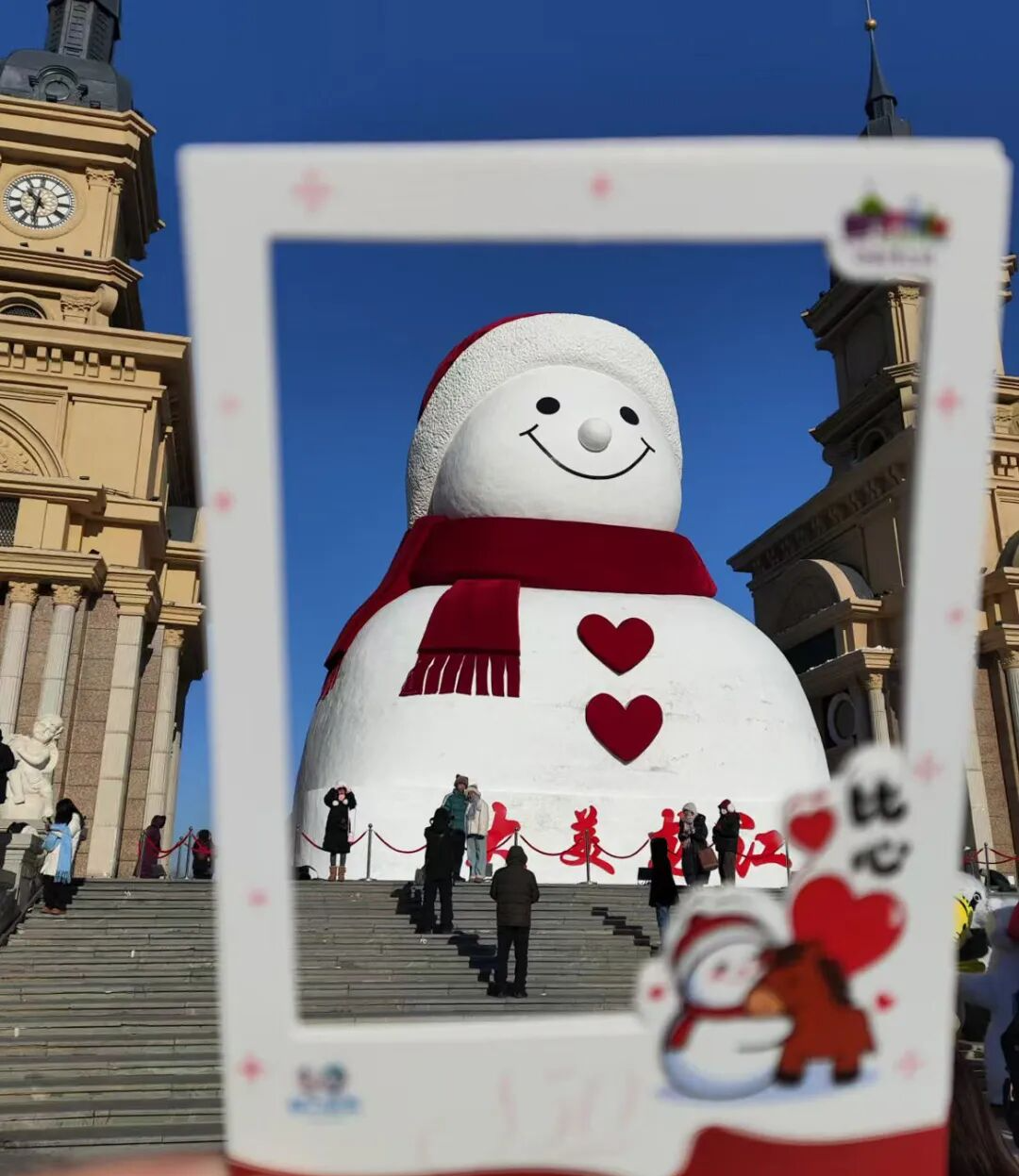 今年的網紅大雪人自12月4日起,由64位雕刻師與百余名建設者歷時11天建成。在延續經典紅帽、紅圍巾與愛心紐扣造型的基礎上,大雪人“長高”至19米,用雪量超過3500立方米,體態更加圓潤飽滿。據悉,今年的網紅大雪人創造了體量最大、用雪量最多、建設周期最短的“三最紀錄”。