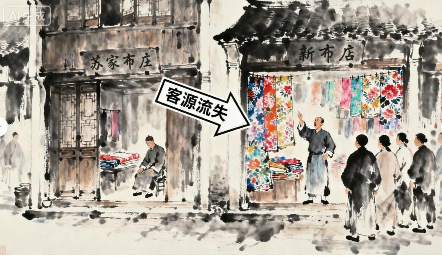 蘇明遠今年三十五歲,接手布莊已有十年。前幾年布莊生意還算紅火,鎮上的姑娘媳婦都愛來他這兒挑布料,可從去年秋天開始,生意就一天不如一天。先是上游的染坊漲了價,布料成本高了,他又舍不得漲售價,利潤越來越薄;后來隔壁又開了家新布莊,花樣多、價格低,搶走了不少客源。這幾個月下來,布莊不僅沒賺錢,還賠進去不少老本,眼看就要撐不下去了。