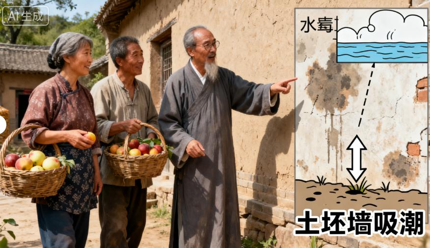 “是老房子,墻是土坯墻。” 趙老實說。老道長說,“一到下雨天,雨水會滲進土坯里,讓墻體變得潮濕;夏天天氣熱,地面的水汽會往上冒,也會讓房屋變得潮濕。潮濕的環境,不僅會讓墻體發霉,還會吸引螞蟻 —— 螞蟻喜歡在潮濕的地方筑巢,你家的螞蟻要是總在墻體附近活動,就說明墻體已經很潮濕了。”