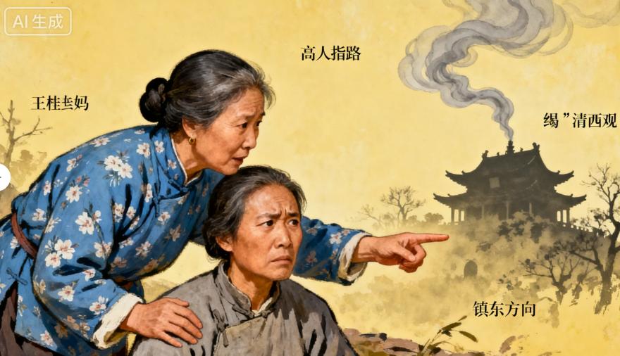 第二天一早,天剛蒙蒙亮,趙老實就騎著自行車,帶著王桂蘭往清虛觀趕。清虛觀坐落在鎮東的山腳下,不大的院子里種著幾棵松樹,透著股清幽之氣。老道長坐在院子里的石凳上,須發皆白,手里拿著一把蒲扇,眼神卻很清亮。
